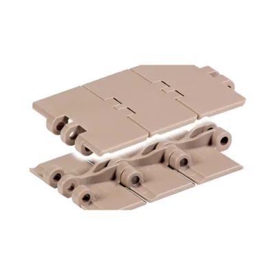 Băng tải Slat Top 820 được làm từ nhựa kỹ thuật cao cấp, đảm bảo độ bền cao, chịu được hóa chất và nhiệt độ tốt.
